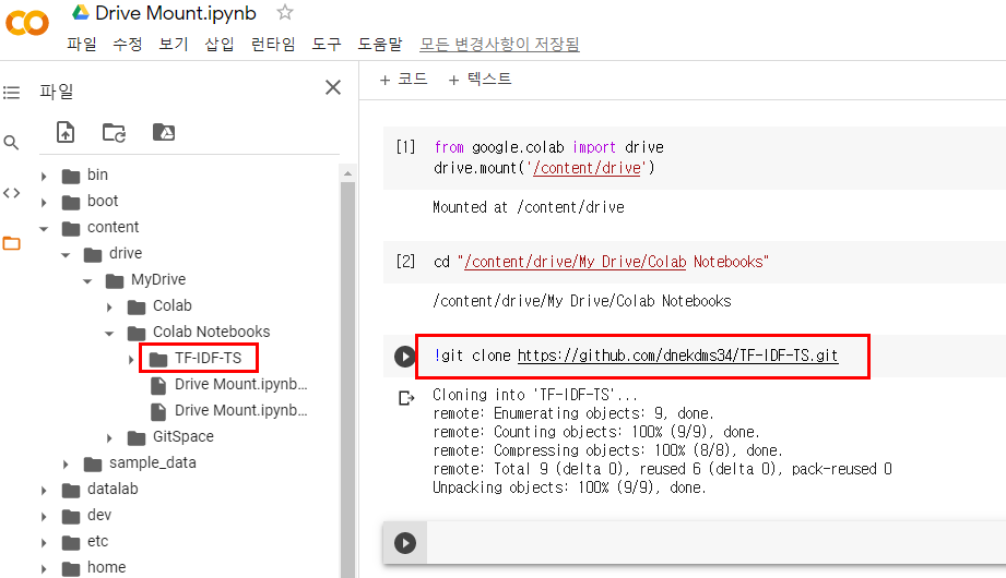 Google Drive에 GitHub 자료들 클론해 보실게요~