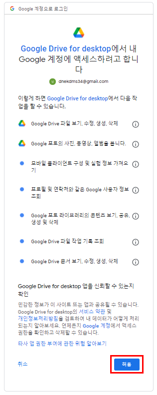 그 다음 뜨는 팝업에서 GOOGLE DRIVE에 연결 클릭