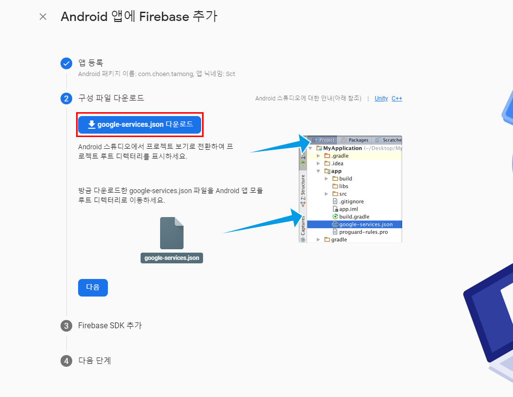 app 폴더 안에 다운받은 json 파일을 넣어줍니다!