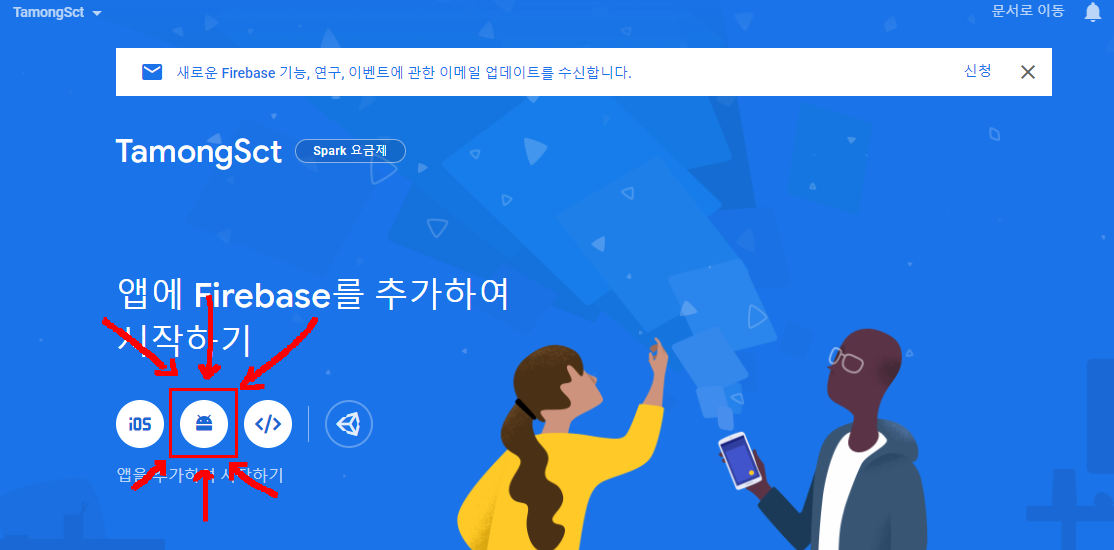 위 안드로이드 버튼을 클릭하여 사용할 프로젝트에 연결해야합니다!