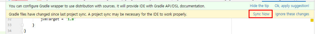 마지막으로 IDE의 표시줄에 있는 '지금 동기화'를 누릅니다!