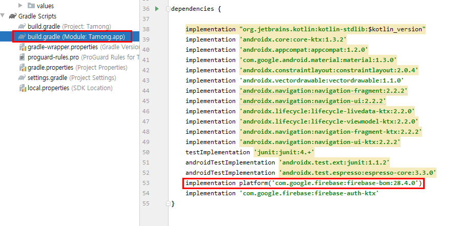 implementation platform('com.google.firebase:firebase-bom:28.4.0')